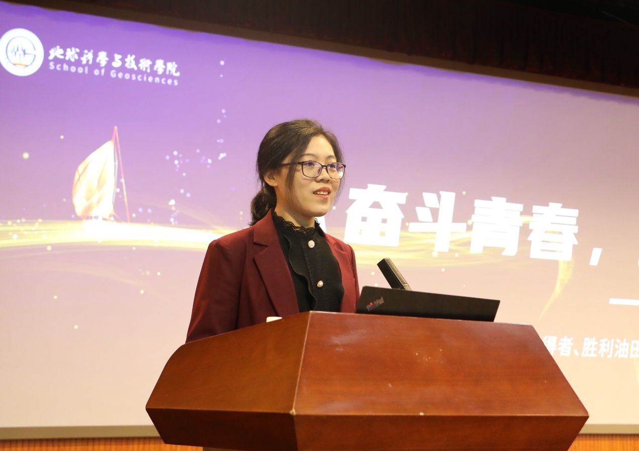秦宁接过话筒,鼓励学妹大胆地选择、大胆地尝试,并给胜利油田插播一条“广告”,欢迎学弟学妹到胜利建功立业,用实际行动为祖国油气事业做贡献。
