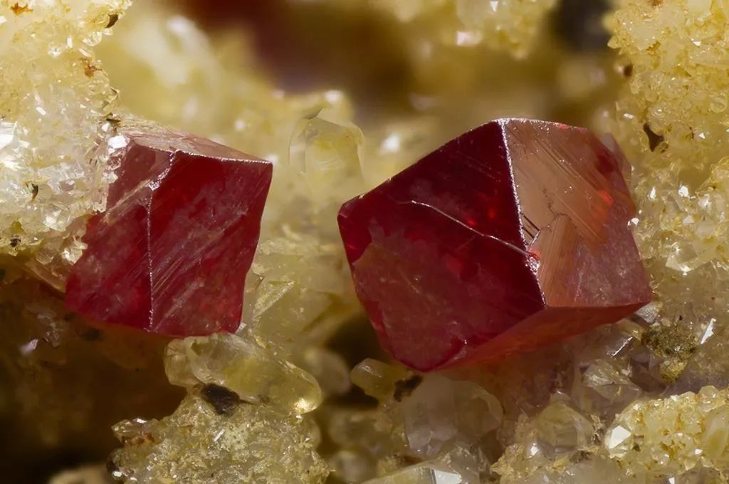 [物理性质] 鲜红色,有时表面呈铅灰的销色;条痕红色;金刚光泽;半透明。解理平行{100}完全。硬度2~2.5。相对密度8.05~8.2。成分纯净者,导电性极差,如含0.1%的Se或Te时,其导电性就显著增加。