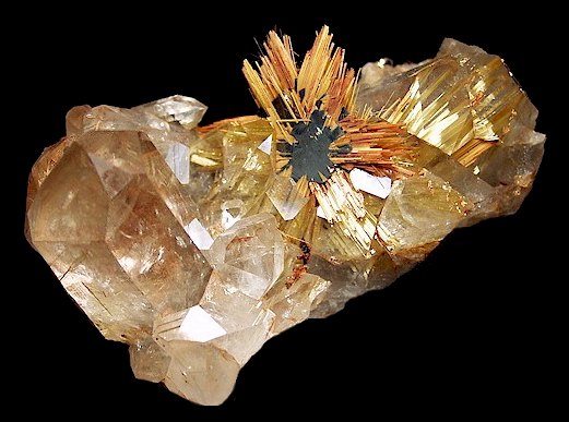 [形态]常见完好的四方短柱状、长柱状或针状,这与其形成条件有关。当有Nb、Ta、Fe、Sn等混入物存在时,常呈双锥状、短柱状晶形,如伟晶岩中所见;而当结晶速度较快,则出现长柱状、针状晶形,如含金红石石英脉中所见。双晶依(011)成膝状双晶和三连晶以及环状六连晶;依(301)成心状双晶者少见。集合体呈致密块状。