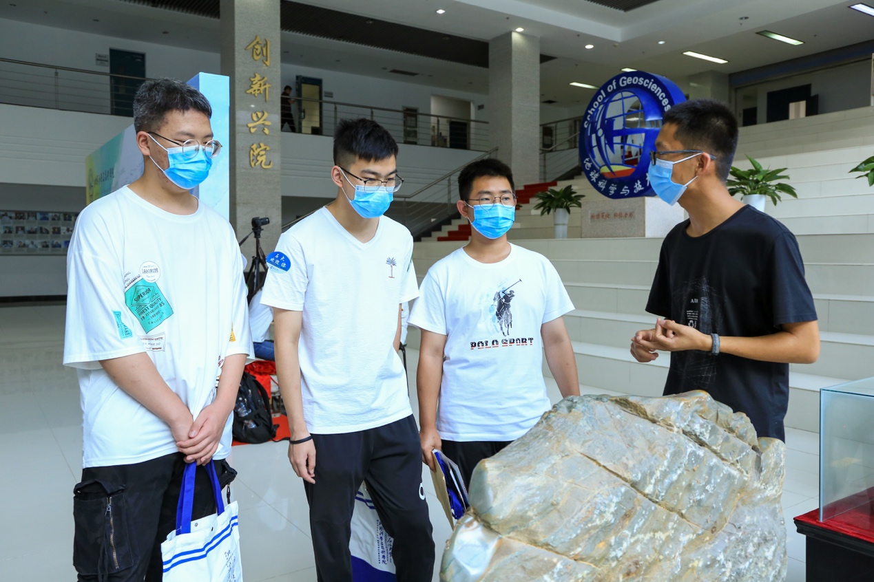 9月10日下午,学院组织完成隔离的山东省外新生参观地质博物馆,同时,来自地质、资源、勘查(物探、测井)、地物四个专业的学生为新生分享大学生活,讲解专业背景、专业知识结构等内容。“在资源勘查工程专业学习像是福尔摩斯探案或‘医生’问诊地球,又是‘将今论古’在演绎一个个发生于远古地质时代的精彩故事。”资源勘查工程专业2018级学生冯家乐向新生介绍道。分享结束后,新生参观地质博物馆,与即将打交道的岩石“问好”,在矿物标本中初步感受地学“奥秘”,感受地学人“勘天下、探未知、当尖兵、兴国家”的价值追求。