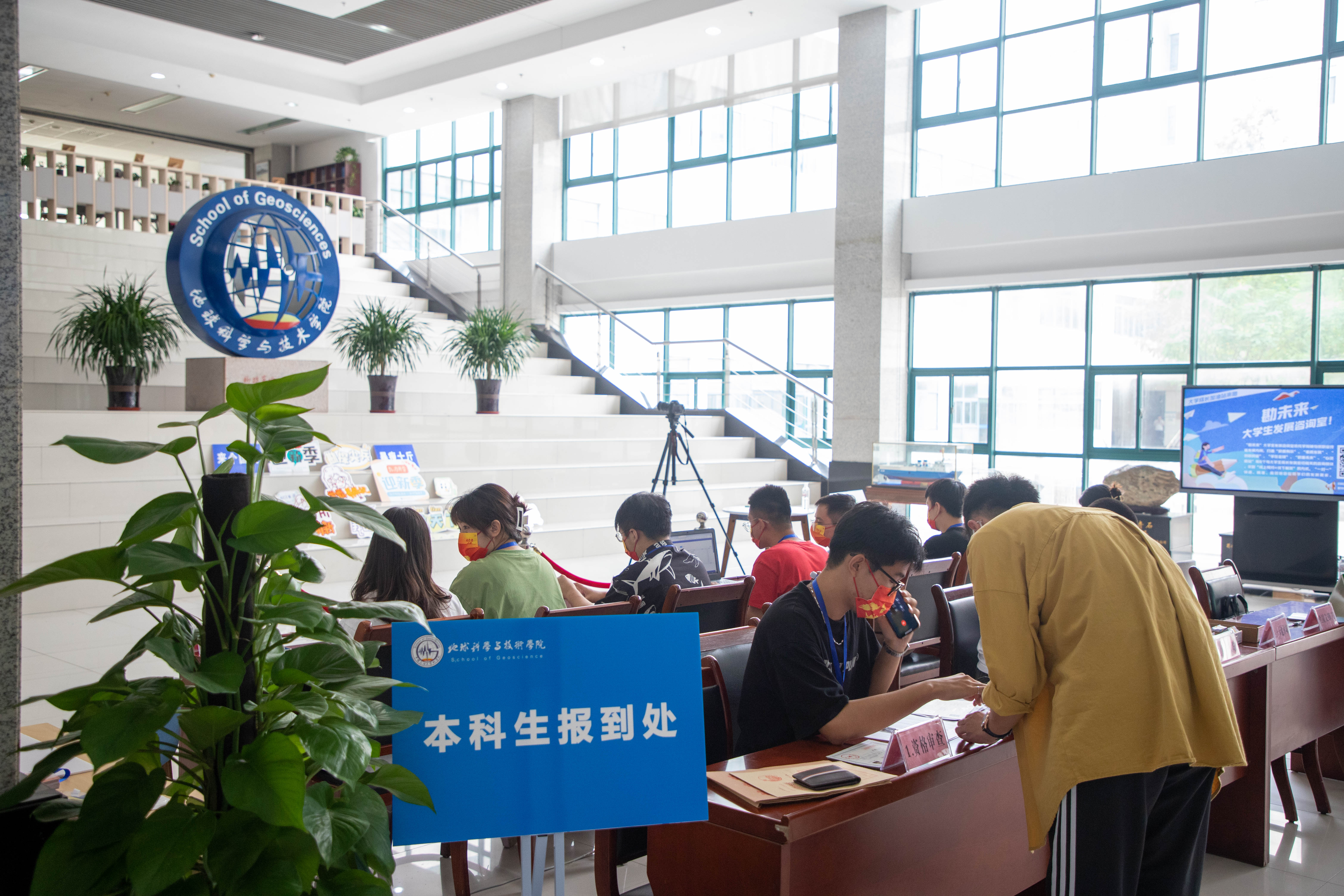 “来到beat365中文官网,给我的感觉是既恢宏大气又温暖如家。”地球物理学专业2201班赵芸露报到时表示。签名展板、横幅标语、欢迎视频,亲切交流的领导老师、温暖热情的学长学姐……工科楼C座处处洋溢着青春的气息和热烈的迎新氛围。