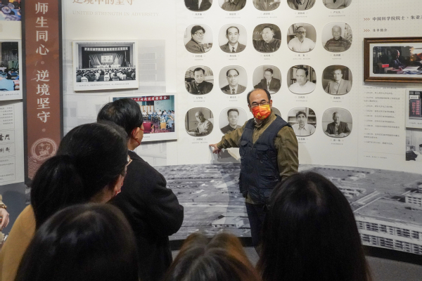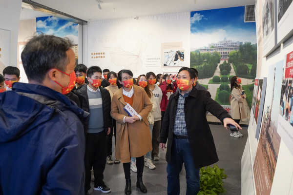 在参观“逆境坚守,师生同心”板块时,印兴耀向同学们介绍前辈教师们艰苦奋斗、学无止境的精神,冯增昭教授在退休后的二十多年间退休不退志、离岗不离学的精神更是深深触动了同学们。