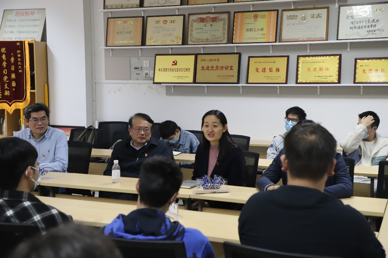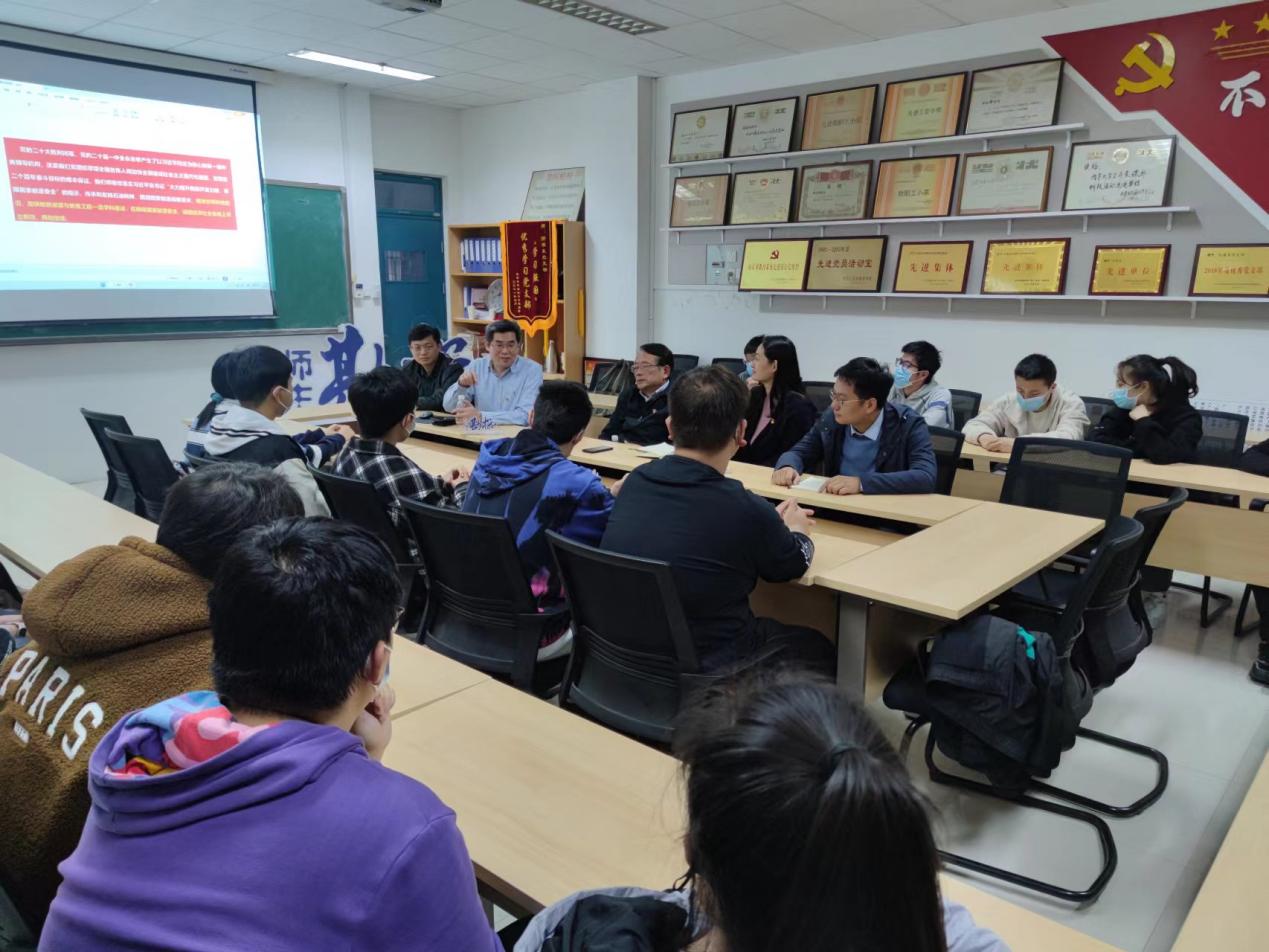 张立强老师为党员们讲解学院发展成果 张世泽摄