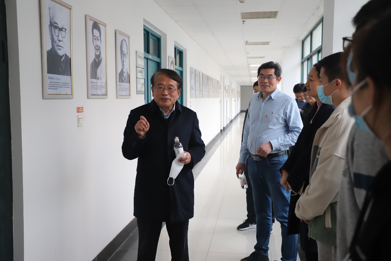 蒋有录教授向大家介绍道:“孙健初先生是第一位跨越祁连山的中国地质学家,探明并开发了玉门油矿,建成中国第一个石油工业基地,是中国石油地质的奠基人,培养了中国第一批石油地质人才。我国最早、最系统的沉积岩石学专著主要撰写人冯增昭,杰出教育学家、社会活动家、著名地质学家张一伟……,我校勘探系一大批杰出科学家为祖国石油地质行业做出了突出贡献,同学们要以他们为榜样,认真学习石油地质知识,传承好学院油气地质事业的火炬。”