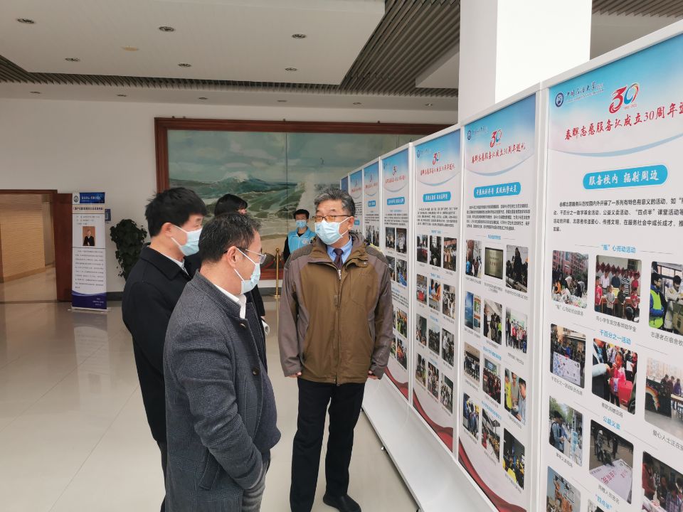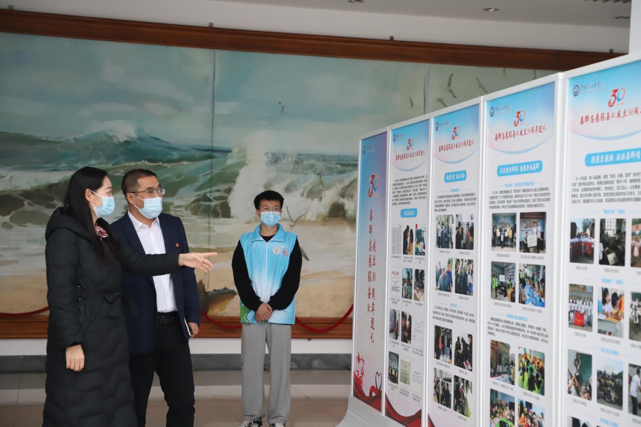 活动开始前,春晖志愿服务队在逸夫礼堂一楼大厅举办《春晖志愿服务队成立三十周年巡礼》专题展。
