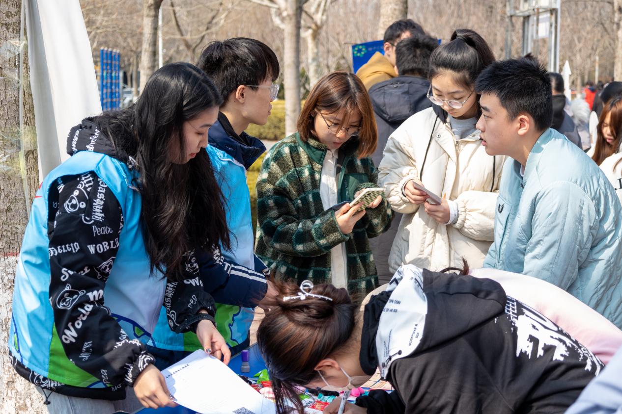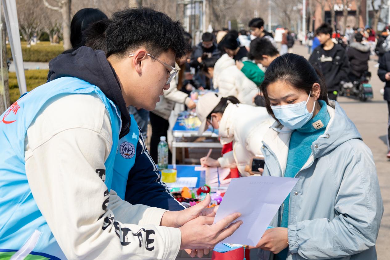 3月4日,在学校第十八届志愿服务节有爱公益集市上,学院青年志愿者现场为同学们介绍春晖志愿服务队三十余年来奉献、坚守、传承的历程,并组织丰富活动,鼓励同学们为内蒙古科尔沁左翼后旗中小学的孩子们捐图书、写祝福、励成长。