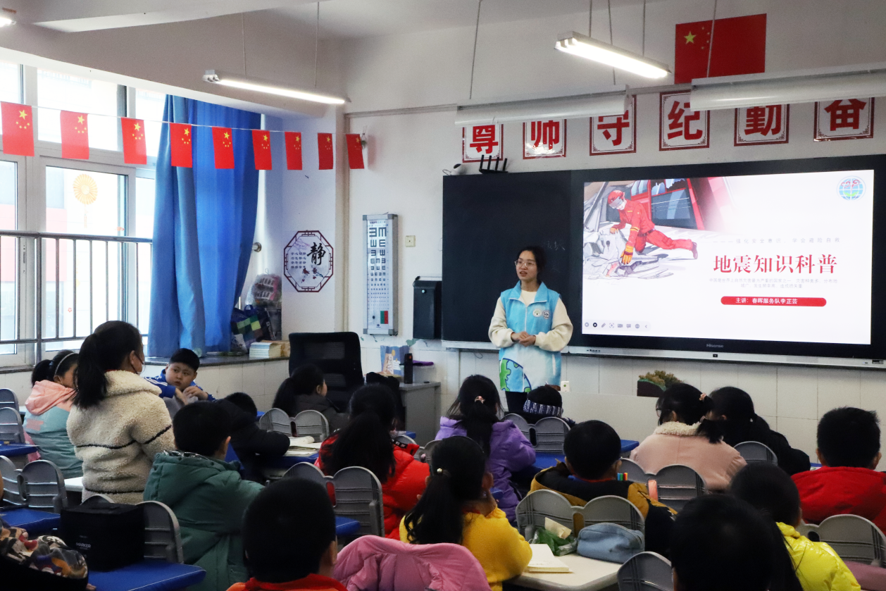在学校新学期第一周,春晖志愿服务队的同学们前往黄岛区积米崖小学开展地球知识科普支教,将寒假精心备课的《地震知识科普》第一时间带给孩子们。这次授课采用卡通视频、地质模型相结合的方式,生动形象地将地震发生原因以及地震对自然环境、人类生活的影响向孩子们讲解。课堂上,春晖志愿志愿者还和孩子们共同模拟了地震发生时的逃生小技巧和自救小知识。据了解,春晖系列科普活动已连续开展多年,讲师团由春晖志愿服务队和共建团支部的同学组成,小讲师们利用寒假时间精心备课,得到了学院老师的专业指导。