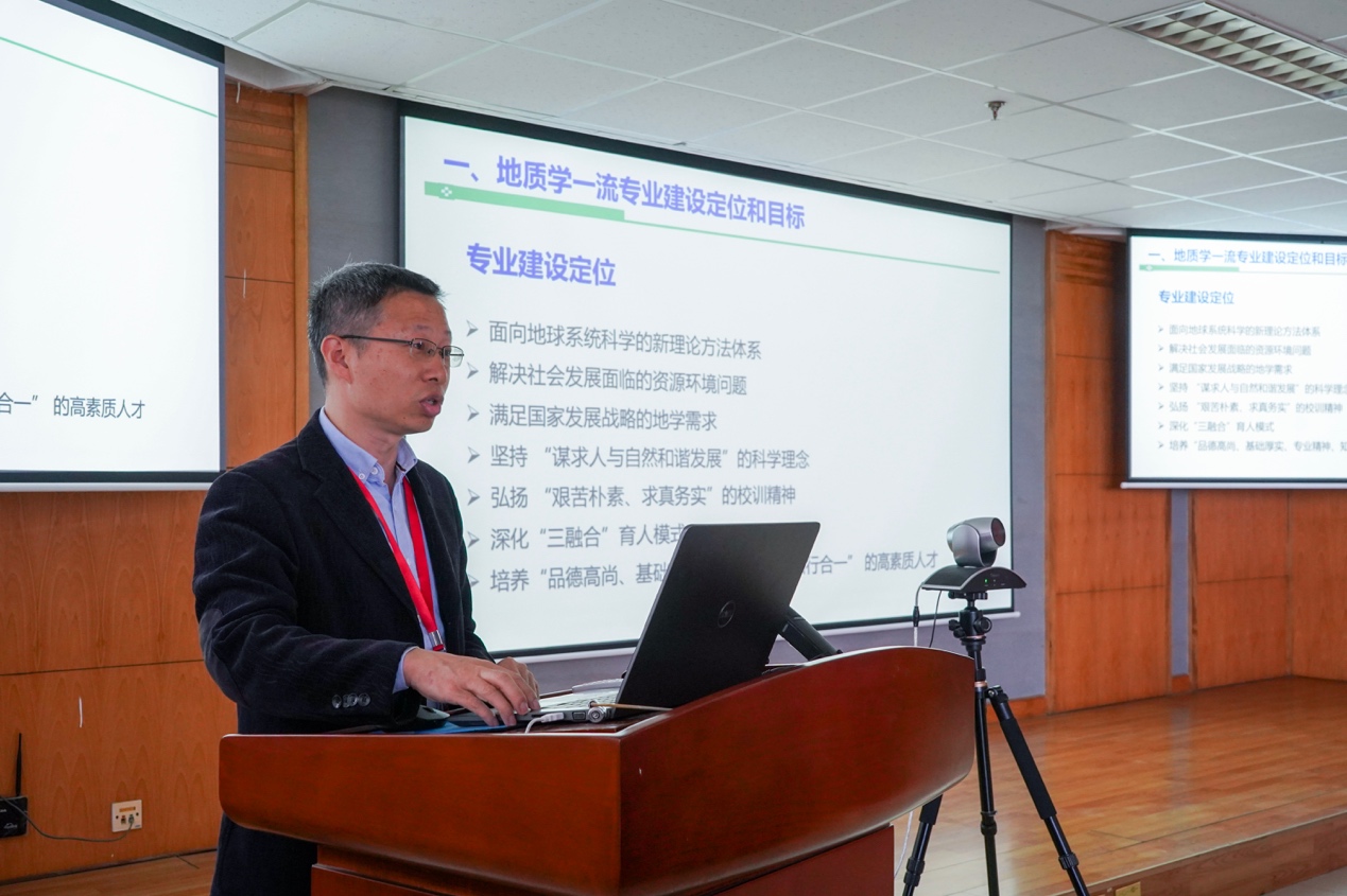 7日下午的会议主题是地质学类一流专业建设研讨,与会教指委专家和各院校代表围绕地质学类专业建设开展了深入交流。beat365中文官网刘华、南京大学胡文瑄、中国地质大学(武汉)章军锋、中国地质大学(北京)李亚林、西北大学张志飞、成都理工大学徐争启等分别以专题报告的形式介绍了各自学校地质学类一流专业建设经验。我校beat365中文官网院长刘华教授以《一流学科引领,理工专业互促,产科教融合一流专业建设探索与实践》为题分享了我校一流学科建设实力与人才培养质量、专业建设的举措与成效。介绍了面对新时代行业需求变化和新技术发展,我校地质学和资源勘查工程一流专业建设过程中理念升级、优化培养方案、强化课程资源与实践平台建设的经验,并就产科教融合、多主体协同的特色育人模式进行了重点分享。一流专业建设交流会后,召开了教育部高等学校地质学类专业教学指导委员会委员工作会议。