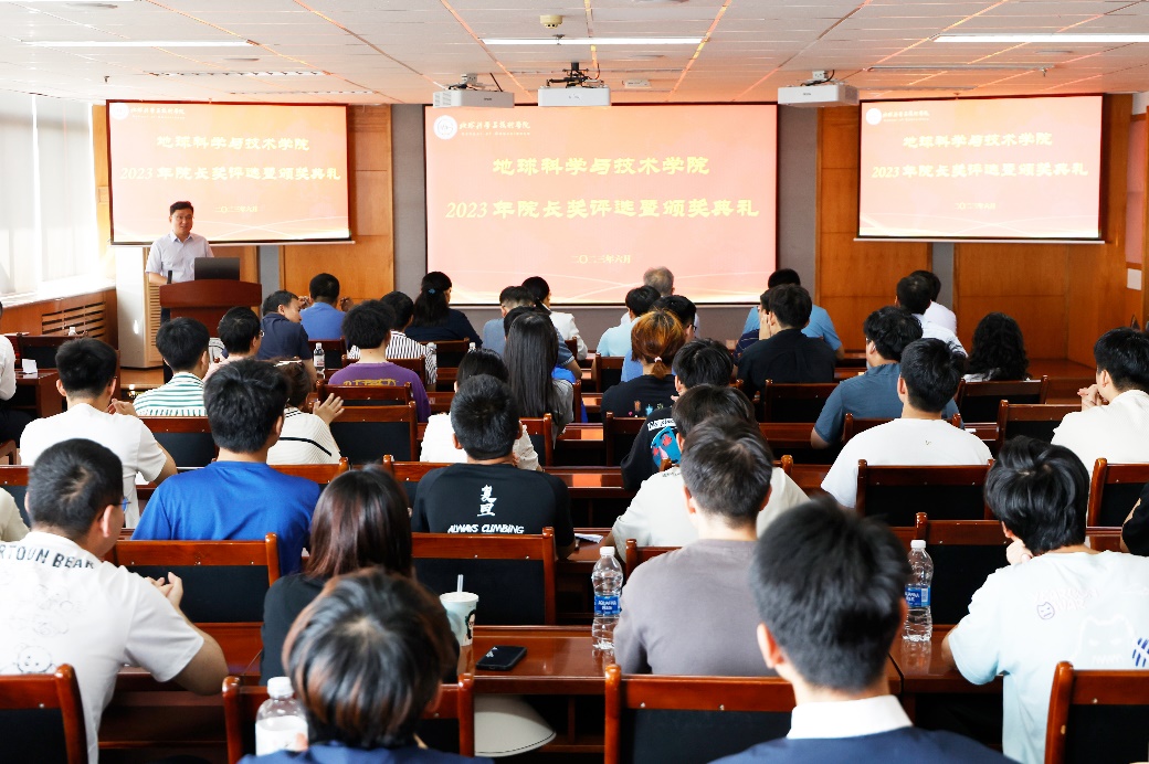经过现场评选,地物2002团支部、王惠君、林敉若、孙清、汤曼、王建侨、张泽宇、袁姝雨、谷佳莹、姜佳文获评院长奖,卫子涵、刘旭文、刘子月获评院长奖提名奖,赵放辉和刘华依次为获奖者进行颁奖。