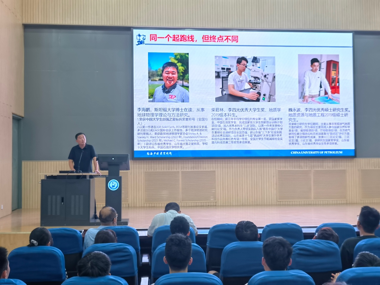 “‘双一流’建设学科”“ESI全球前1‰”“国家重点学科”……副院长宗兆云教授用一系列成果、进展为新生家长展现一流学科建设为学生培养奠定了学科优势和发展契机。他结合个人发展经历,强调大学阶段学习的重要性。他表示,学院培养的是最优秀的石油地质学家,石油地球物理学家,希望新生及家长要对专业有信心,“给专业一个机会,也是给自己一个机会!”为广大新生及家长注入一针强心剂。