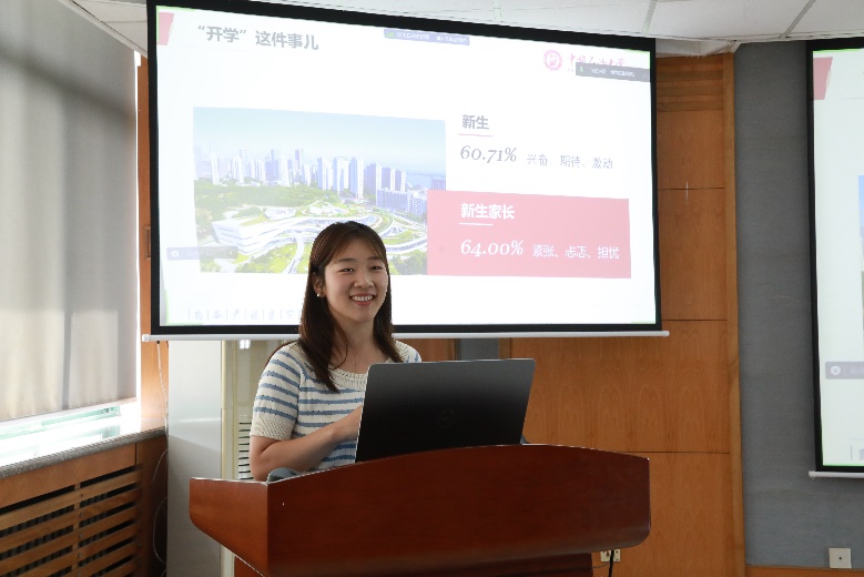 研究生辅导员栗磊介绍了学院毕业生就业情况,他通过解读国家发展战略,分析社会就业形式,通过历年学院毕业生去向等详实数据,认为无论以后是升学还是找工作,beat365中文官网学生都有得天独厚的机会和选择,增强了2023级新生及家长对未来职业发展的信心。学校心理健康中心辛晓雯以“从‘心’出发——大学新生家长的适应与成长”为题,帮助学生家长如何进行心态调整,成为孩子成长的资源,同时为家长介绍了关于心理健康的基本知识和常见误区,引导家长正确看待心理健康情况。本科生辅导员姜永昶以“良好的开端是成功的一半”为题,对大学生新生适应问题进行说明。他表示,大学是一个环境由简单变为复杂、身份由单一变为多样、生活由依赖变为独立的过程,希望新生家长能够与学校密切配合,让新生更快地适应大学生活。