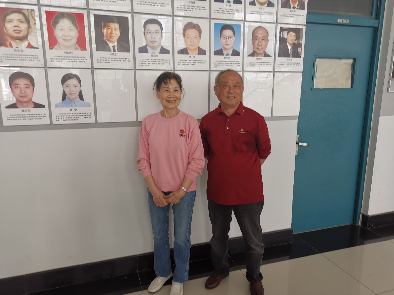 蒋加钰(女)是“全国劳动模范”、“全国五一劳动奖章”获得者,曹师伊(男)2001年荣获“全国五一劳动奖章”,两位院友是同学也是夫妻,更是杰出院友,这次回到母校,在学院杰出院友墙的本人照片前合影,更觉得无上光荣!