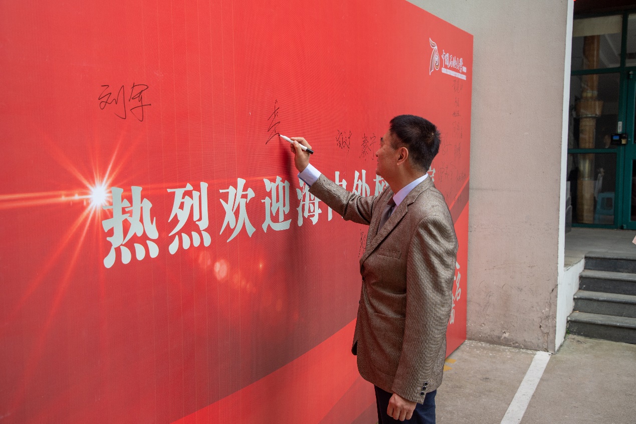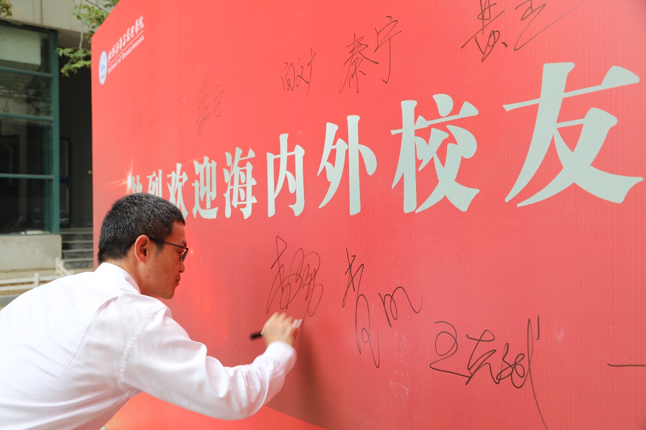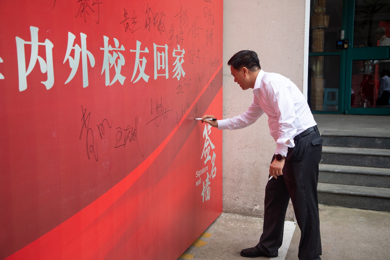 李宁院士在校庆文化墙上签名留念