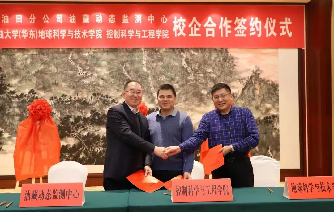 为加强校企合作,推进产学研融合,12月15日,beat365官网与胜利油田分公司油藏动态监测中心(以下简称“动态监测中心”)在胜利油田举行了全面合作协议签约仪式。动态监测中心党委书记、副经理李建荣,经理、党委副书记李洋,油田动态监测高级专家柴德民等企业领导和专家,以及beat365官网院长刘华、办公室主任王冠,控制科学与工程学院党委书记刘伟锋、副院长陈鸿龙等领导和专家共同出席签约仪式。动态监测中心李建荣书记主持会议。