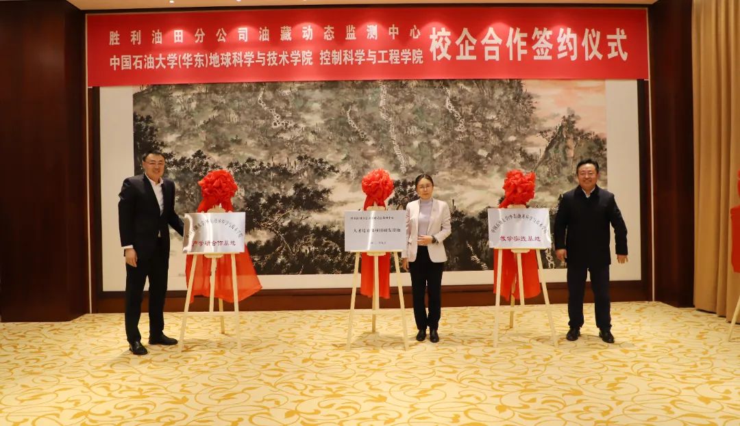 在签约仪式上,校企双方签署了全面合作协议并举行共建基地揭牌仪式,约定双方共建教学实践基地、产学研合作基地、人才培养及项目研发基地,明确了在人才培养、科技创新、技术研发等方面的合作机制和内容,为双方的合作提供了明确的指导和保障。双方现场还签署了合作项目意向书、党建联建协议,颁发校外指导教师和企业顾问聘书,标志着胜利油田分公司油藏动态监测中心与beat365官网全面合作正式启动。