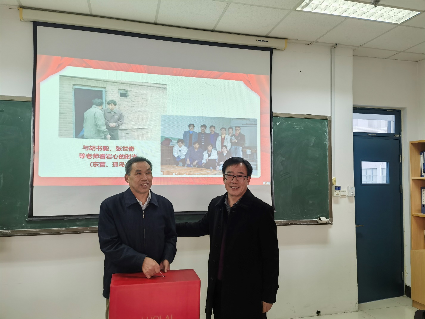 王德钊主席回忆了与国景星教授20多年的友谊,称赞其担任系党支部书记时勤勤恳恳,带领支部获山东省先进党员活动室;感谢其担任院工会主席时积极组织活动,营造良好氛围。最后对国景星教授荣休表示祝贺,感谢他在科研和教学工作中长久以来的付出。
