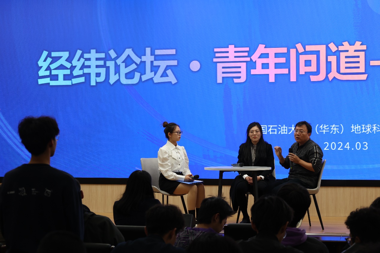 3月20日上午,学院邀请胜利油田物探研究院首席专家、石油地质勘查专业1992级校友芮拥军,胜利油田物探研究院党委常委、总工程师、勘查技术与工程专业2004级校友秦宁做客“经纬论坛·青年问道”,与青年学生共话生涯规划与成长。学院党委副书记郑珊珊,各年级辅导员以及150余名青年学生与行业专家现场进行互动交流,地质学专业2021级本科生李雨桐主持活动。