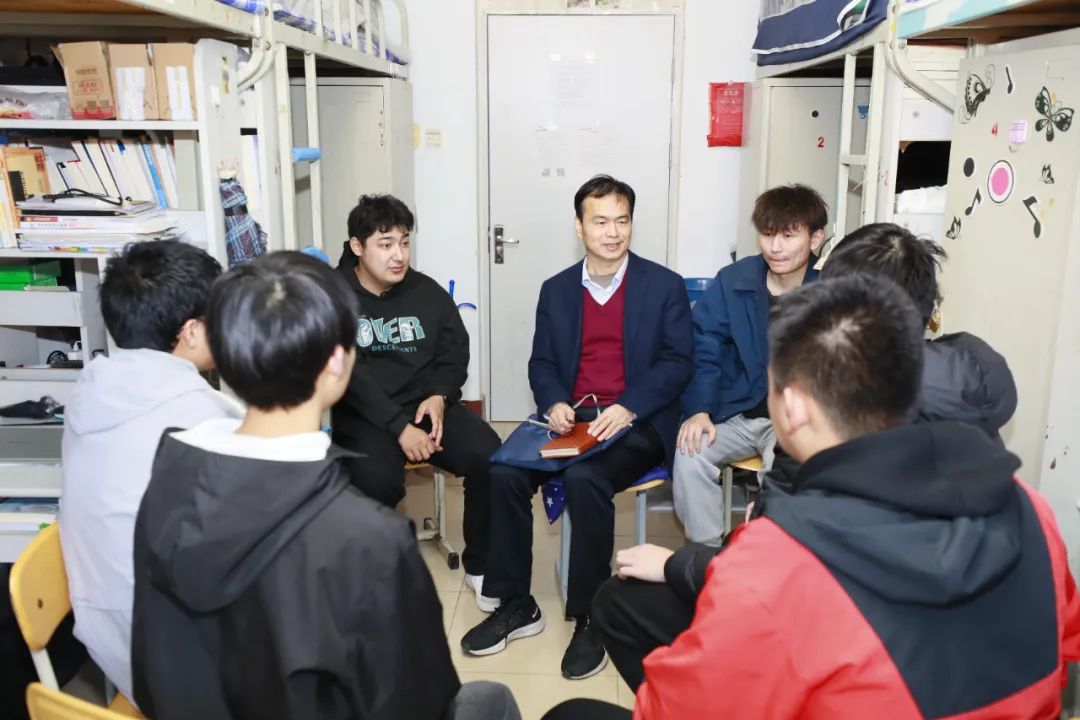 伴随着新学期的到来,许多学生也出现了个人发展上的困惑。勘查技术与工程专业2022级学生何煦就是其中一员,面临课程难度加大,个人发展不明确的困境,他出现了消极应对的情况。班主任张军华教授在得知情况后便主动走进学生公寓,与学生谈心交流。他表示,勘查技术与工程专业非常注重数理基础,同学们一定要认真学习,克服困难,学好专业基础课,也建议大家在剩余时间可以根据自己的兴趣和发展方向,参与一些竞赛和科研活动。在张军华的帮助下,班内学生迅速调整心态,积极迎接新学期发生的变化,班级同学集体成绩位列专业前列。