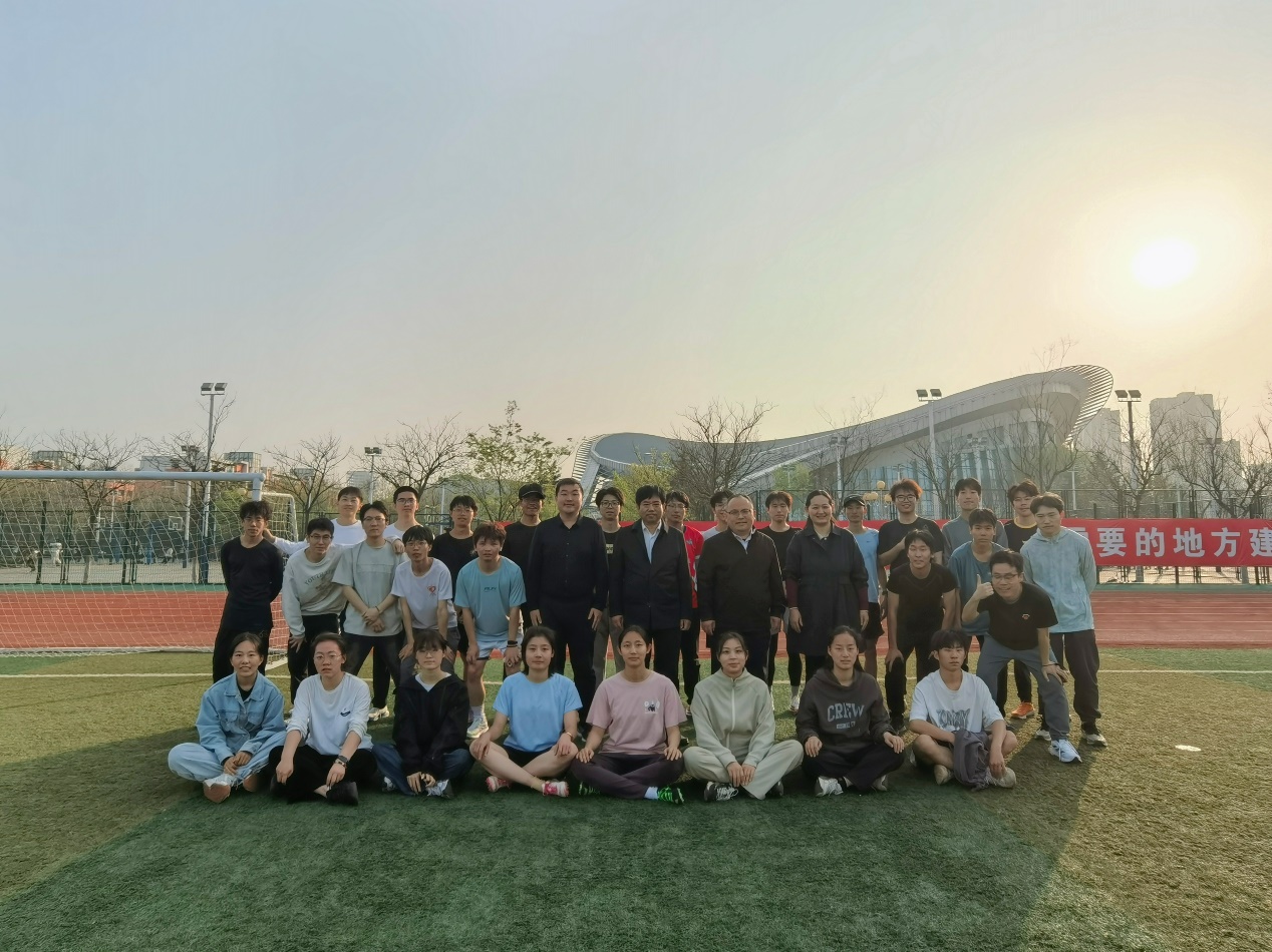 田径场上的运动员正在做跑步、高抬腿等热身运动,经过一个月的训练,beat365官网运动员各个项目的动作技巧、协调性、灵活性进步明显。在运动场上,学院领导与春训运动员进行了亲切的交谈,详细了解了大家的训练状态和身心状况,对所有参训人员在训练中展现出的朝气蓬勃、斗志昂扬的精神面貌予以充分肯定,并鼓励大家继续以饱满的热情对待春训。宗兆云详细询问了春训队后勤保障情况,他表示学院将提供更多的人力、物力、财力保障运动员训练,他要求运动员要坚持“安全第一”的原则,积极锻炼身体,努力拼搏,争取在今年的校运动会上取得优异成绩。牛庆玮感谢大家的付出与坚持,希望同学们合理安排训练强度、规范细化训练方法,聘请专业教练为大家讲解专业动作,科学备战、安全备战,全面提升身体素质和动作技能。郑珊珊提醒运动员们务必将安全问题放在首位,训练过程中注意身体状况,若有突发情况即刻停止训练并寻求帮助,避免在训练中受伤。最后,学院领导与在场师生合影留念。