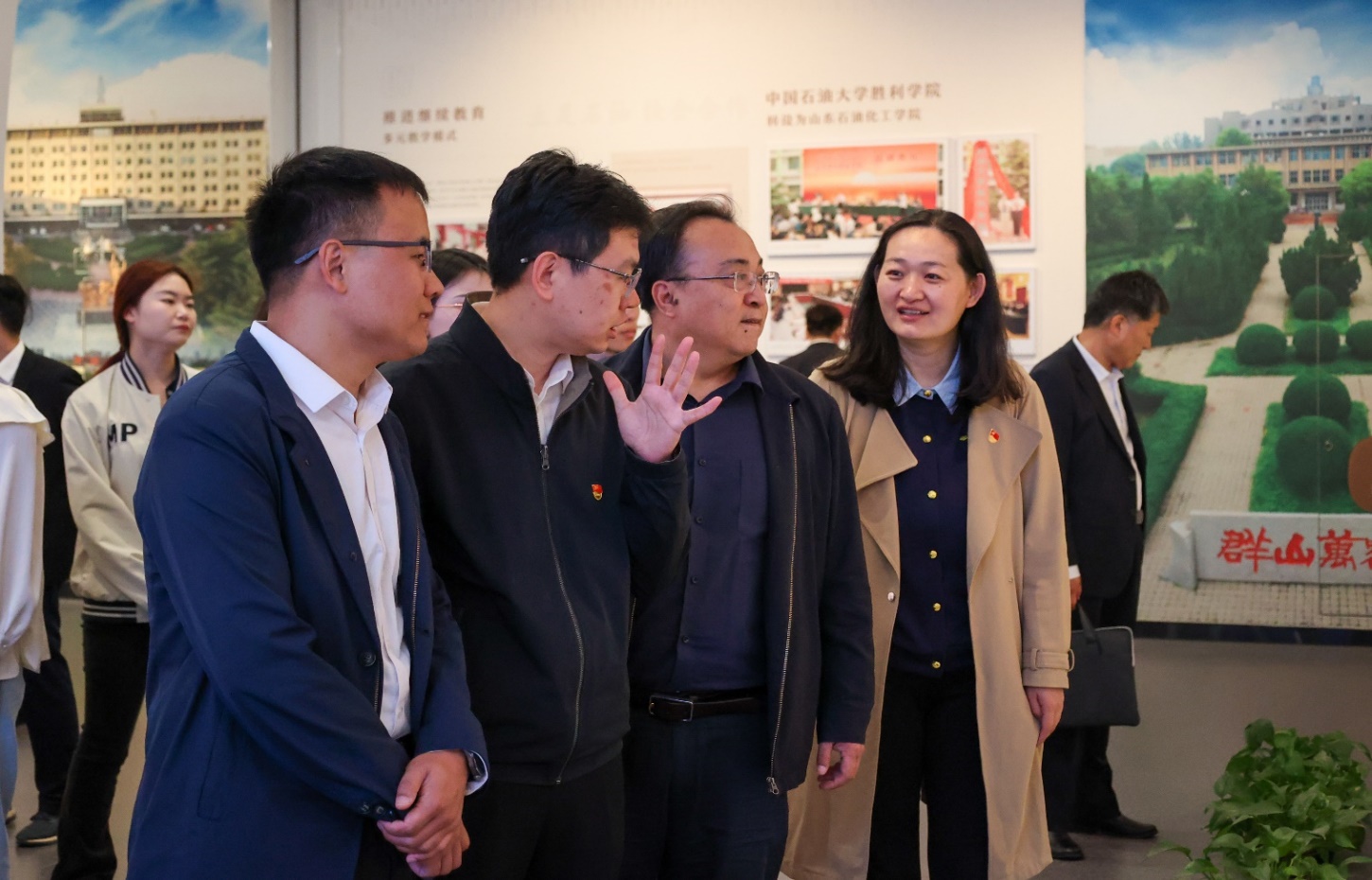 胜利油田李政一行在beat365中文官网党委副书记郑珊珊等人的陪同下参观了校史馆。