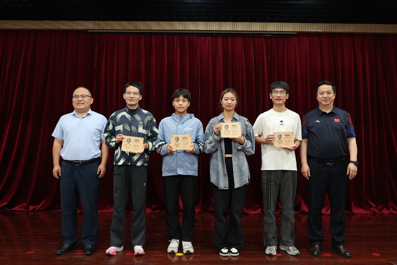 教师运动员代表张敏、学生运动员代表徐旺分别代表受表彰个人发言。