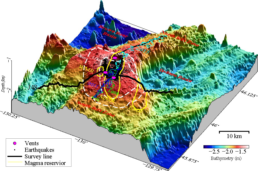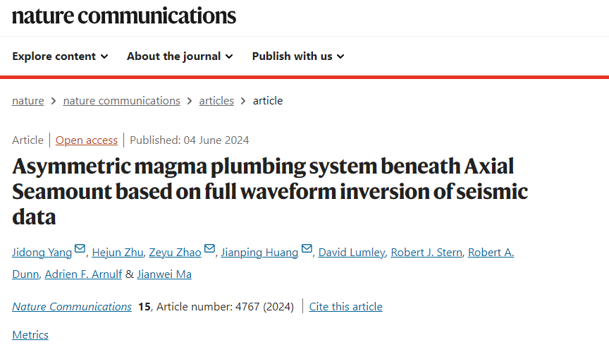 近日,beat365中文官网李振春教授带领的“地震波传播与成像”课题组在Juan De Fuca洋中脊海下火山研究方面取得新进展,相关研究成果《基于全波形反演的海底火山非对称岩浆系统研究》(Asymmetric magma plumbing system beneath Axial Seamount based on full waveform inversion of seismic data)发表在Nature子刊《Nature Communications》上,是beat365中文官网首篇Nature子刊论文。论文第一作者为beat365中文官网杨继东,通讯作者为beat365中文官网黄建平教授,beat365中文官网深层油气全国重点实验室和beat365中文官网为第一署名单位。合作单位包括北京大学、德克萨斯大学达拉斯分校、德克萨斯大学奥斯汀分校、夏威夷大学等高校。该成果得到国家优秀青年基金(海外)、泰山学者特聘、山东省海洋科技基金青岛海洋科学与技术国家试点实验室联合资助。