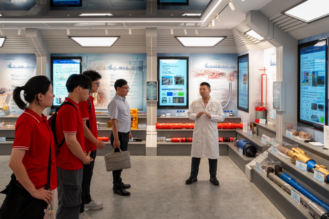 在全国示范性劳模和工匠创新工作室——刘洪涛创新工作室,队员们了解到工作室汇聚70余名不同领域青年骨干,工作室成员平均年龄30多岁,开展跨部门跨学科集智攻关,研发出适应塔里木盆地深地特点的钻头、钻井液、封隔器、采气树等高端工具和装备,通过工作人员的深入讲解,感受“鹰一样的个人,狼一样的团队”创新文化。