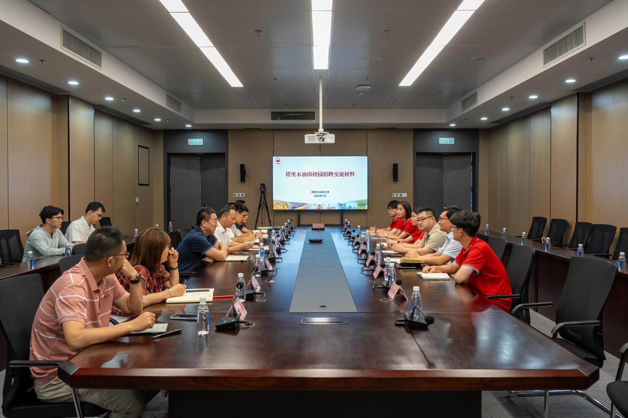 在塔里木油田勘探开发研究院,队员们与油田人力资源服务中心副主任刘明光,朱永峰、邓兴梁等十余位油田专家校友进行了深入座谈交流。队员们听取了塔里木油田公司总体情况和校园招聘、人才培养等相关情况介绍,了解到随着超深层复杂油气藏勘探开发进程加快,公司更加依赖高质量科研力量支撑,对以博士研究生为主的高层次人才需求越来越大,公司正积极贯彻“两新两高”的工作方针,在高层次人才引进上持续用力。在谈到员工发展时,刘明光指出,塔里木油田公司实施“双序列”发展制度,各序列横向转换和纵向晋升成长成才通道都通畅,同时公司加大专业技术人才激励力度,薪酬向“高技术含量、高附加值”岗位倾斜。