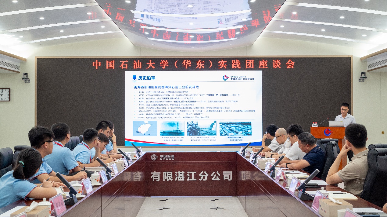 实践团走进中海油湛江分公司,与生产部、科技与信息化部、南海西部石油研究院、勘探开发部和人力资源部等部门展开深入交流。南海西部油田党校副校长武二亮介绍湛江分公司正以“上产一千万方”为目标把“碧海丹心,能源报国”镌刻在碧波万顷的大海上、奋楫蓝海的实践中。实践团成员和与会专家就企业人才需求情况、员工发展路径、可燃冰页岩油技术发展情况等展开交流。
