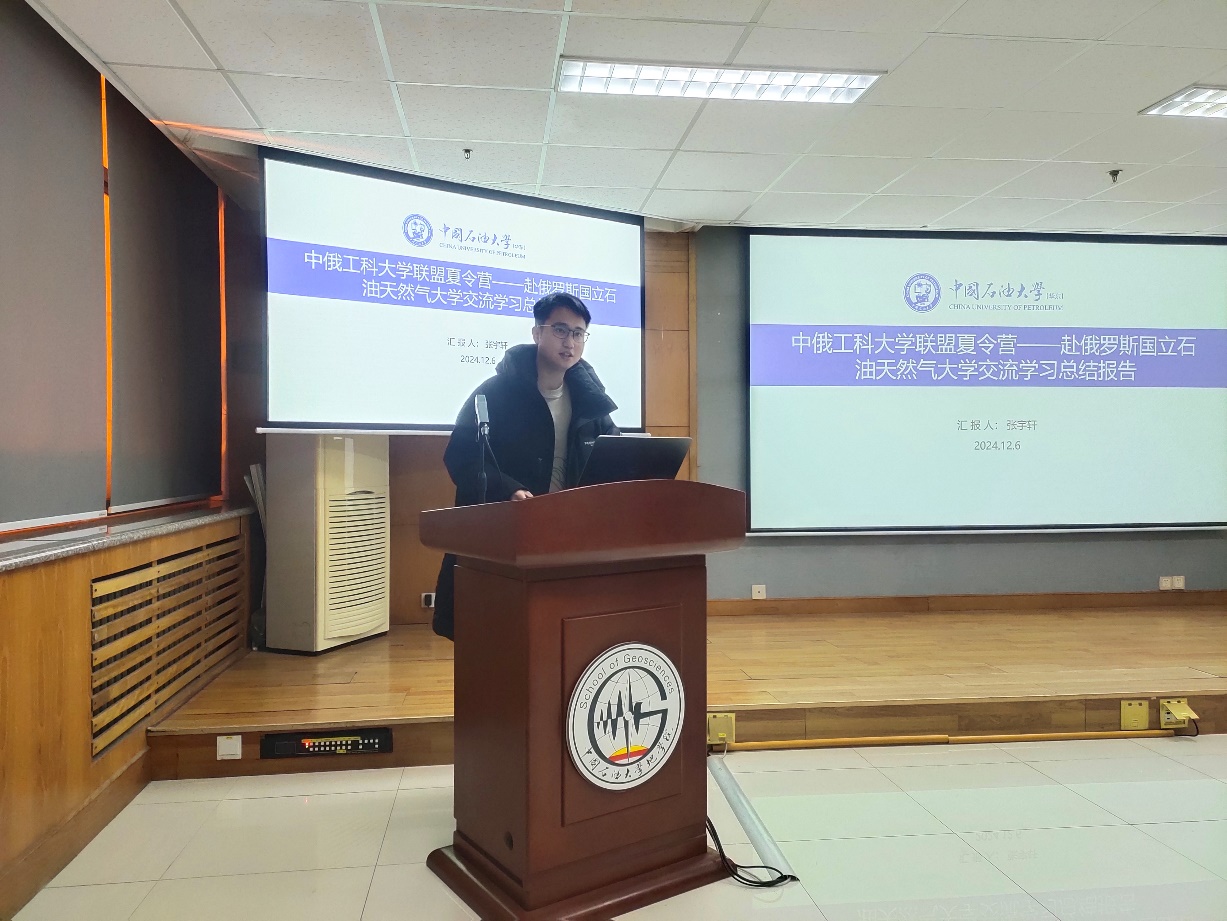 报告会首先由张宇轩同学分享了2024年暑假参加中俄工科大学联盟“能源与工业可持续发展”夏令营活动的感受。该夏令营由beat365中文官网与俄罗斯国立石油天然气大学(国家研究型大学)(以下简称“古勃金大学”)联合承办,于7月27日至8月4日在莫斯科举办。张宇轩同学对本次夏令营的主要活动和安排,在俄罗斯的学习经历、俄罗斯文化和艺术以及出国生活经验和同学进行了认真的分享。认为参加本次夏令营自己收获很大,对于古勃金大学在本次夏令营的组织和安排也表示非常满意,并动员同学们积极参加学校组织的夏令营活动。