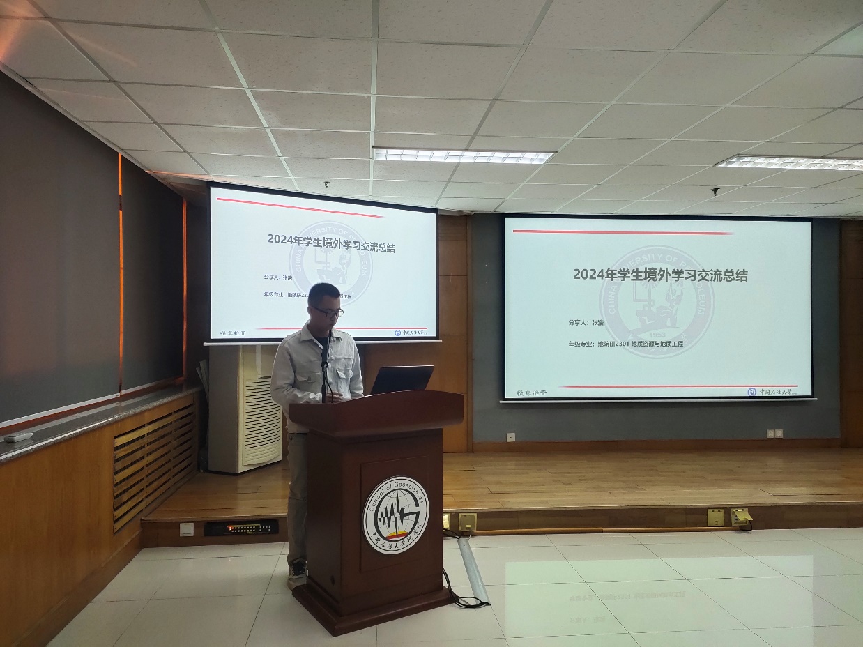12月6日晚,学院在工科C757报告厅举行2024年境外学习交流总结报告会,报告会由学院国际事务办公室李勇主持,报告会邀请参加2024年境外学习交流的张宇轩和张浩同学先后为同学们做了经验分享,学院2024和2023级本科生100余人参加交流。