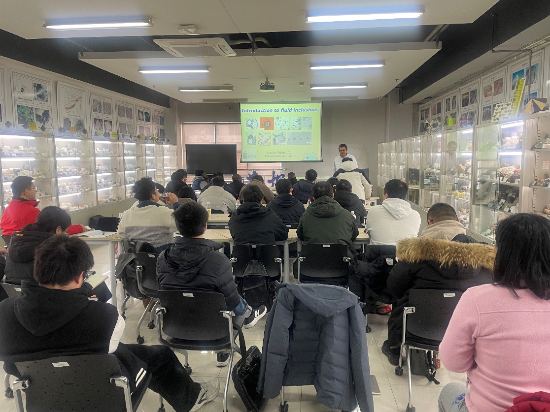 2024年12月19日至2024年12月22日,学院GeoFriday第93期讲座于工科楼C地质博物馆成功举行。王淼特任副教授邀请来自智利大学的Daniel Moncada博士为beat365官网研究生讲授了《Introduction to fluid inclusions in ore-forming and hydrocarbon systems》的短期课程。学院师生五十余人参加本次交流。